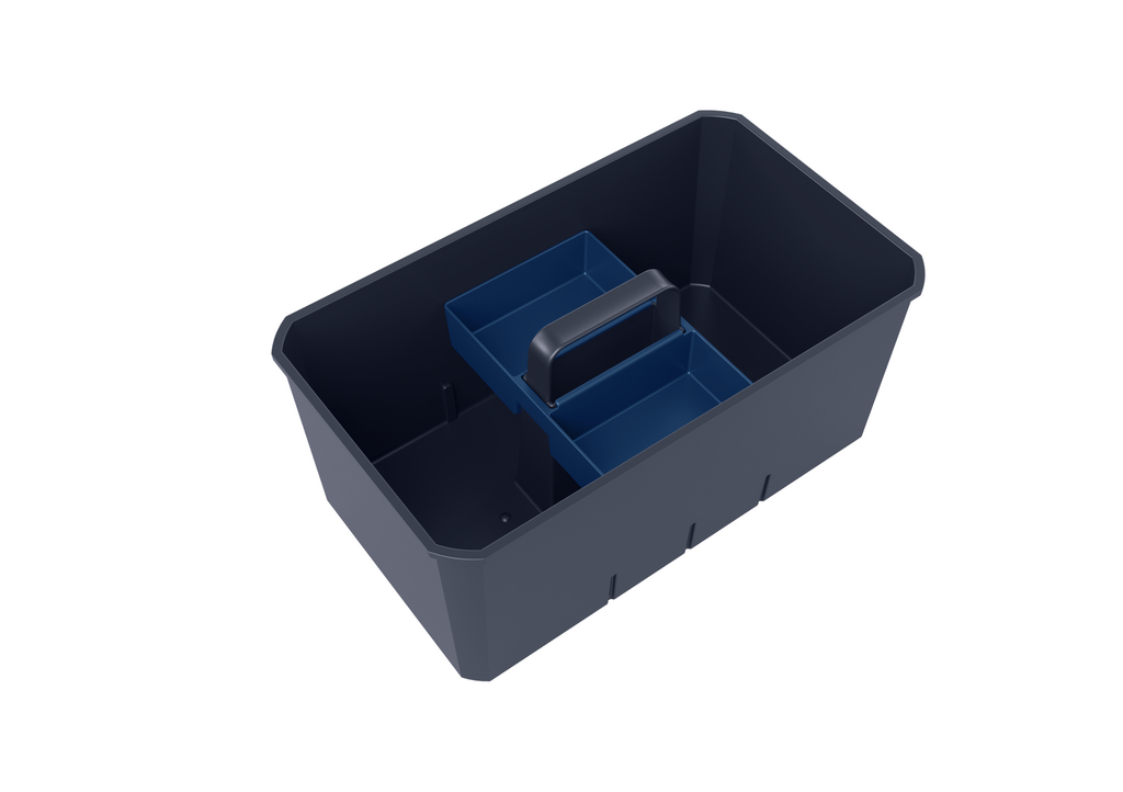 Variante 2 beinhaltet zusätzlich zur Cox Work® Box eine Kleinteilebox, die elegant über den integrierten Griff befestigt wird und Platz für viele kleine Dinge bietet.