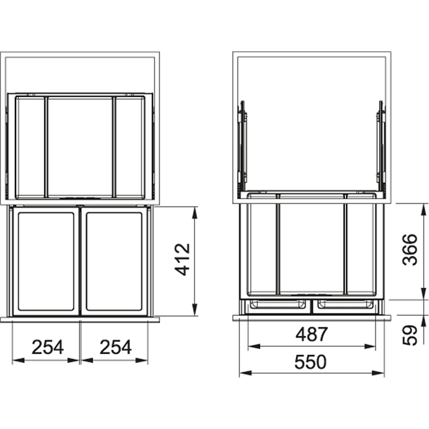 - Abfalltrennung 2-fach (2x26 l) oder Abfalltrennung 3-fach (1x 26 l, 2x 11 l)