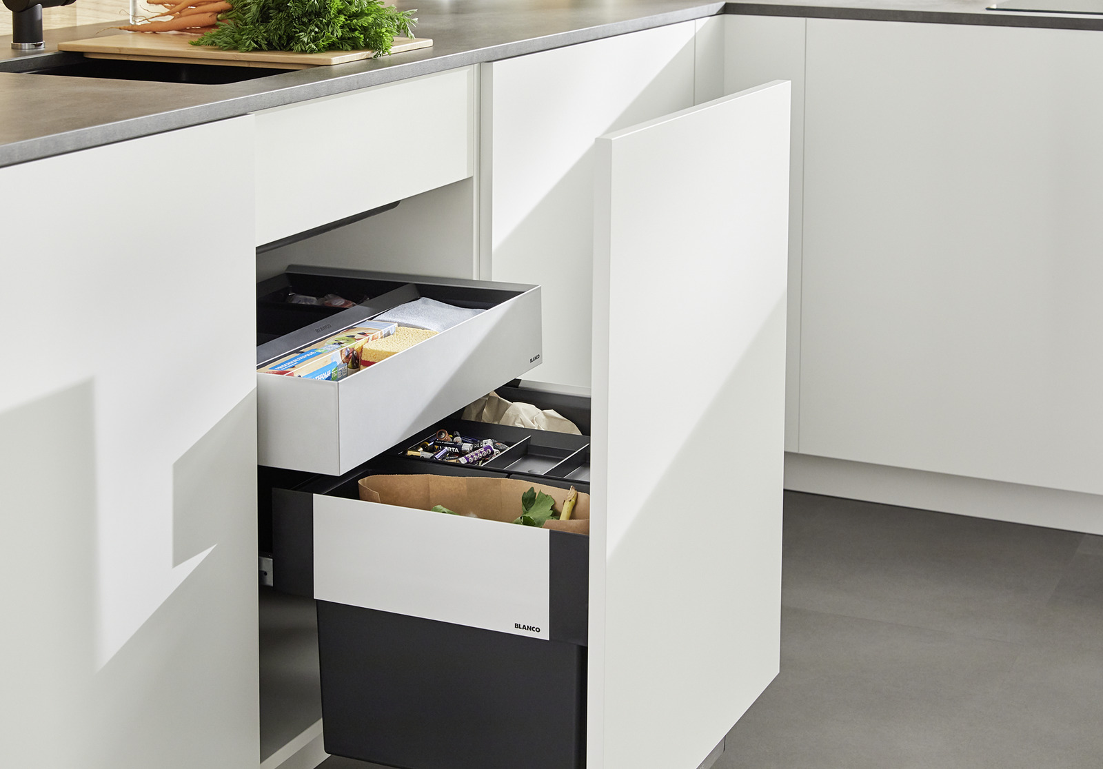 - Sammeln, Trennen, Ordnung schaffen - das Abfallsystem für Schränke mit losen Fronten