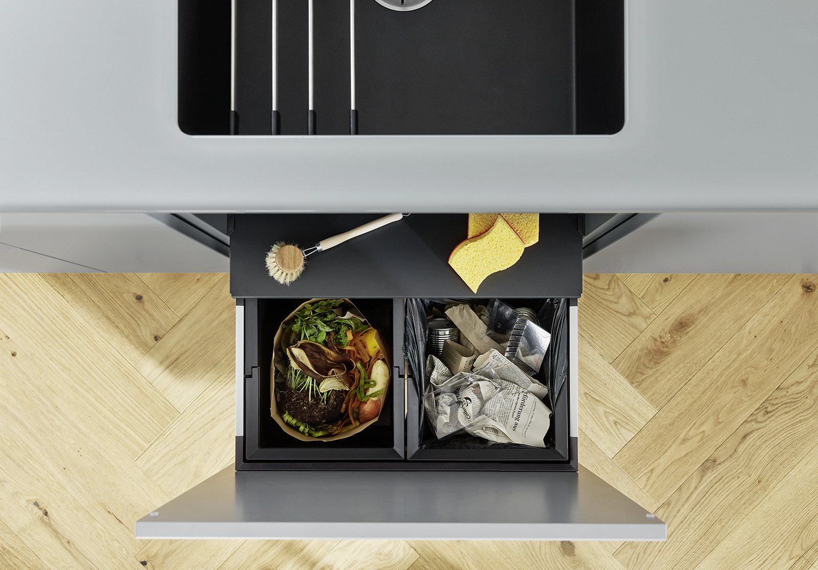 In der Planung oft vernachlässigt, im Küchenalltag wichtig: der Spülenunterschrank. Mit BLANCO SELECT II wird auch dieser Raum optimal genutzt, abgestimmt auf die Bedürfnisse Ihrer Kunden. BLANCO SELECT II vereint alle Vorteile des bewährten Abfallsystems mit neuen Eigenschaften und wird somit noch wertvoller für Küchenplanungen aller Art. Neu ist die moderne Optik mit hochwertigen Aluminiumelementen.