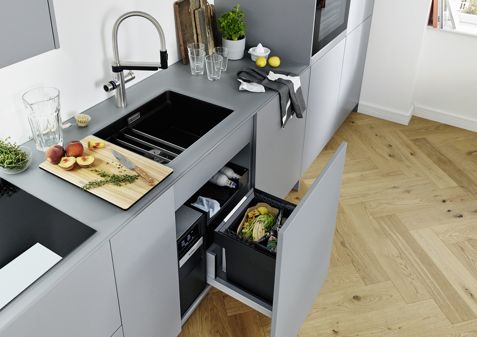 In der Planung oft vernachlässigt, im Küchenalltag wichtig: der Spülenunterschrank. Mit BLANCO SELECT II wird auch dieser Raum optimal genutzt, abgestimmt auf die Bedürfnisse Ihrer Kunden. BLANCO SELECT II vereint alle Vorteile des bewährten Abfallsystems mit neuen Eigenschaften und wird somit noch wertvoller für Küchenplanungen aller Art. Neu ist die moderne Optik mit hochwertigen Aluminiumelementen.