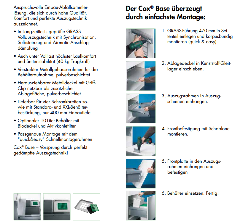 Cox Base-Board® Vorsprung durch perfekt gedämpfte Auszugstechnik!