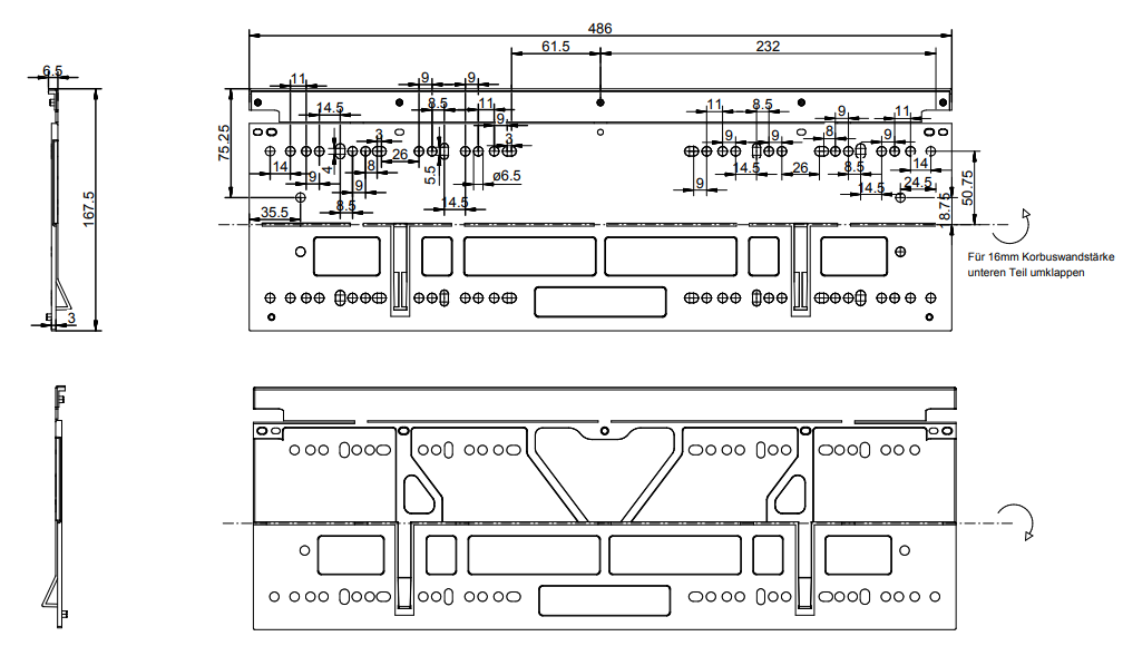 Inklusive Deckelaufnahme und Ausgleichselement für 16er/19er Korpusseiten.