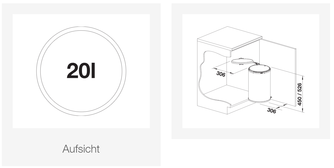 Im Lieferumfang enthalten: System zur Montage an Drehtüren, 1 x 20 l Eimer, Eimerdeckel