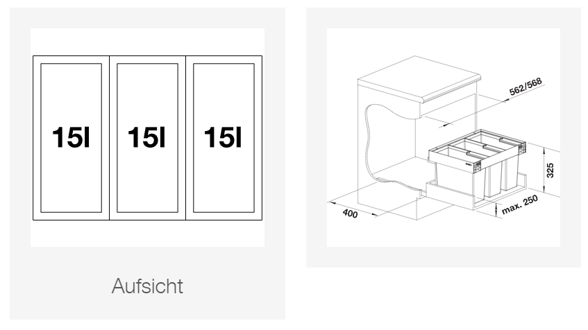 - System zum Einbau in Schubladen, 3 x 15 l Eimer