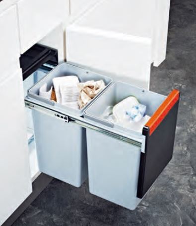 • Abfalltrennung 2- fach, inkl. Behälter 2 x 15 ltr. (134.0039.553) oder 1 x 20 ltr., 1 x 10 ltr. (134.0039.554)