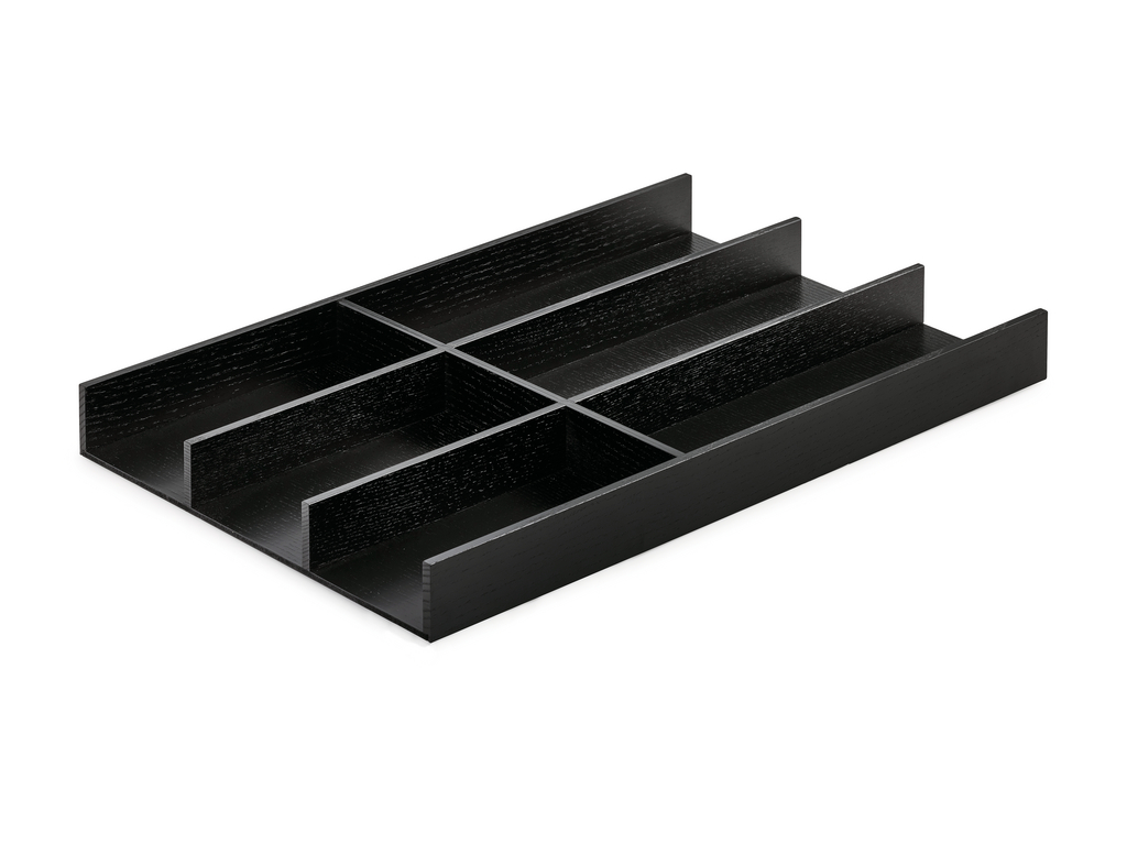 Das Naber Modify Schubladenausstattungssystem, ausgelegt für Schubladen mit einer Tiefe von 472 mm, bietet eine Vielzahl von Einsatz- und Erweiterungsmöglichkeiten. Durch das durchdachte System an Ausstattungselementen können Schubkästen und Auszüge bedarfsgerecht eingeteilt werden. Diese Flexibilität macht Modify zu einem echten Tausendsassa der Schubladen-Ausstattungssysteme. Die aus Echtholz gefertigten Module zeichnen sich durch hochwertige Materialien sowie eine exzellente Verarbeitung aus und geben jeder Schublade eine individuelle Einteilungsstruktur. Mittels stufenlosen horizontalen Verschiebens der unterschiedlichen Elemente, können zum Beispiel Freiräume in jeder beliebigen Größe gebildet werden, die eine individuelle Aufbewahrung diverser Küchenaccessoires ermöglichen. Aufgrund der Verwendung von Antirutschmatten auf dem Schubkastenboden, ist es nicht notwendig, den Schubkasten komplett mit Einsätzen zu versehen. Dabei kommt das System mit wenigen hochwertig gefertigten Komponenten aus und bietet funktionelle Accessoires für den täglichen Bedarf. Es ist breitenflexibel und löst das Problem des Anschlusses an Schubkastenzargen ohne senkrechtes Innenprofil.