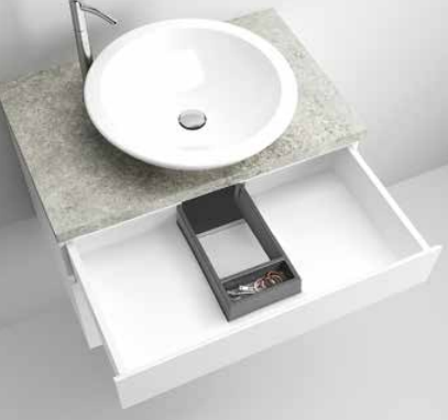 Der Siphonschutz bietet, bei frei planbaren Waschtischunterschränken, die Möglichkeit, den Platz unterhalb des Waschtisches optimal als Stauraum zu nutzen. Dabei deckt der Siphonschutz den notwendigen Ausschnitt optimal ab und bietet optional Stauraum für Accessoires.