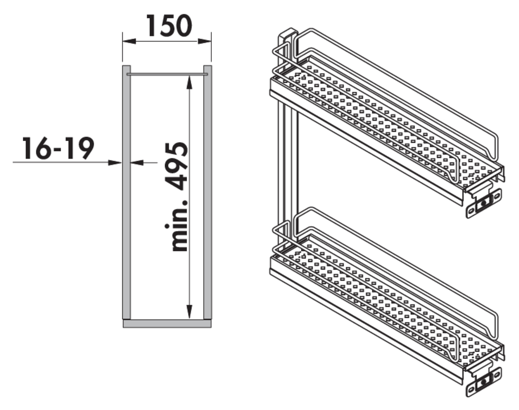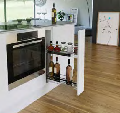 Der VS SUB Slim Etagenauszug nutzt die Nischen in der Küche optimal aus. Als Ablage, Handtuchhalter oder Backblechhalter wird so auch die kleinste Lücke genutzt.