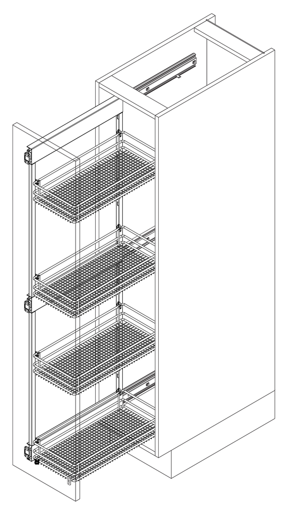 Der VS TAL Side Seitenauszug ermöglicht es, den Stauraum in einem 300 mm breiten Korpus maximal auszunutzen.