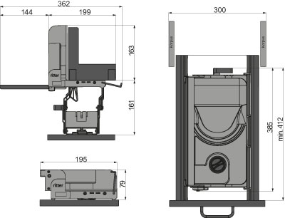 - Voraussetzung: Lichtes Innenmaß > 195 mm. Steht vor der Arbeitsplatte.