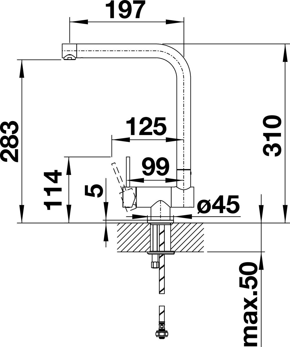- Optimale Bauhöhe ermöglicht komplettes Versenken des Auslaufs in das Becken