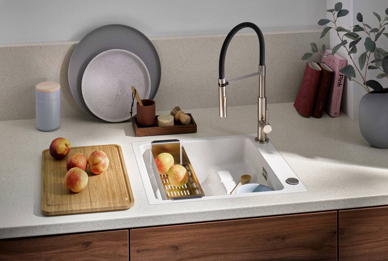 Im modernen Design präsentiert sich die Linea Küchenarmatur Drive 4. Dabei punktet sie durch ihren hohen, kontrastfarbenen Bogenauslauf, der individuell ausgewählt werden kann. So kann je nach Küchengestaltung oder persönlichen Vorlieben ein anders farbiger Auslauf montiert werden. Der einfach zu handhabende Mischhebel ist seitlich angeordnet. Neben der erhabenen Optik begeistert die Spültischarmatur durch ihre funktionalen Details. So bietet sie einen flexiblen Brausekopf, der zwei unterschiedliche Strahlarten zur Verfügung stellt. Diese können direkt am Auslauf eingestellt werden. Darüber hinaus wird die vielseitige Anwendung durch den weiten Schwenkbereich von 360° ergänzt. Ebenso überzeugt die Armatur in puncto Material mit robusten und langlebigen Eigenschaften. Eine hochwertige Edelstahlbeschichtung schafft unempfindliche und leicht zu pflegende Oberflächen. Ausgestattet ist die Hochdruckarmatur mit einer Keramikkartusche, die Durchflussmenge und Wassertemperatur präzise regelt. Die Montage erfolgt einfach auf dem Beckenrand oder der Arbeitsplatte. Dank der integrierten Stabilisierungsplatte besteht ein sicherer Stand.