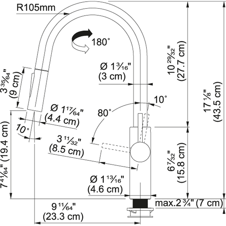 - Schwenkbereich: 180°