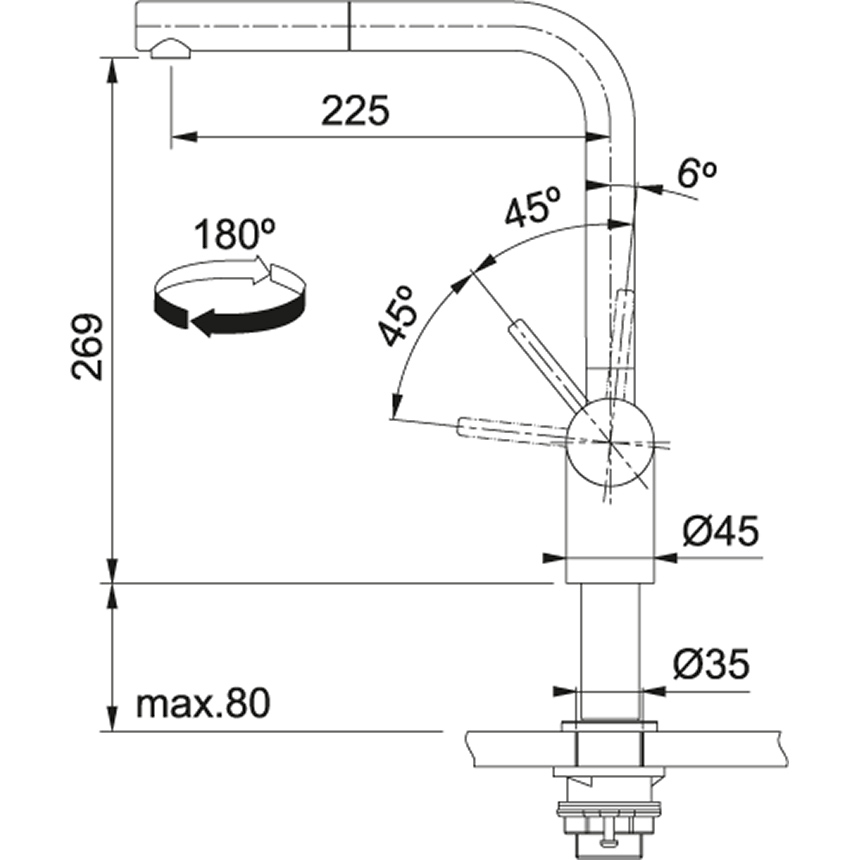 - Dank des 0-90° Bediengriffes ist eine wandnahe Montage möglich
