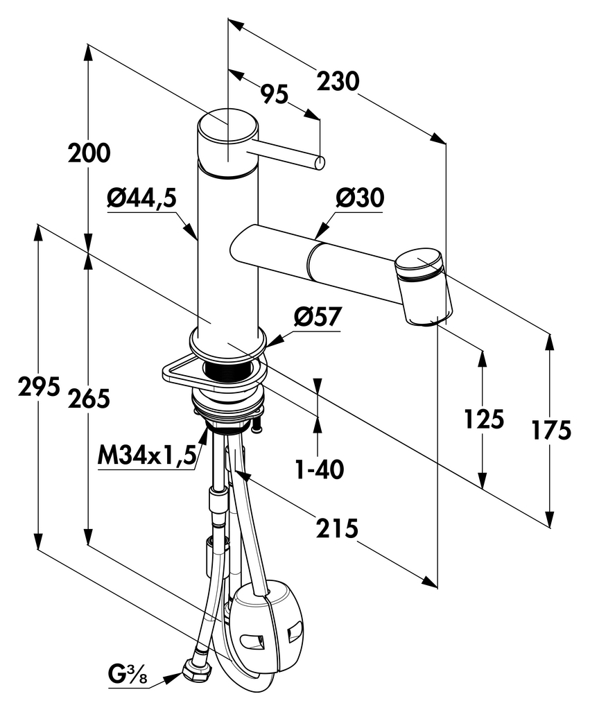 - Einhebelmischer mit schwenk-/herausziehbarer Schlauchbrause aus Edelstahl (Strahl/Brause umstellbar) und Keramikkartusche.