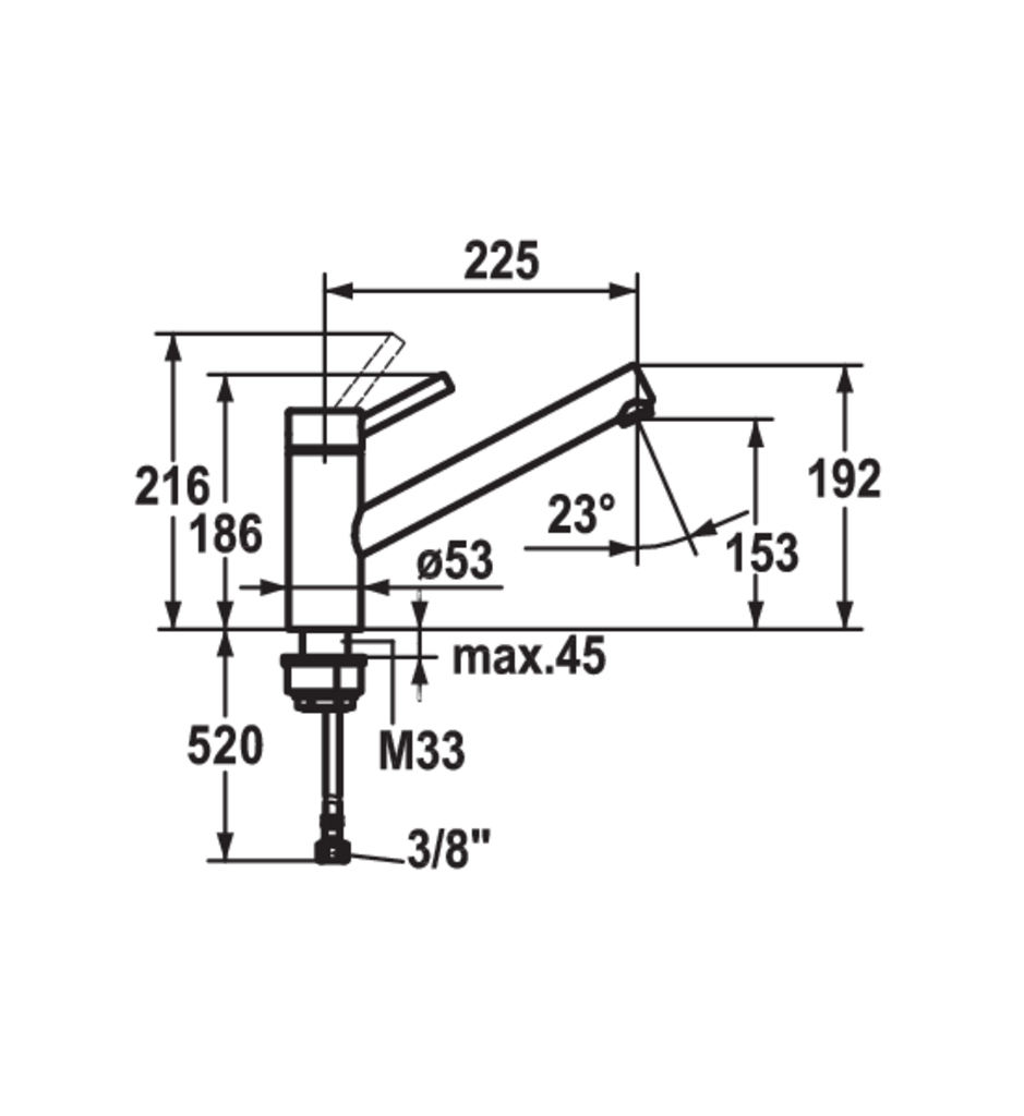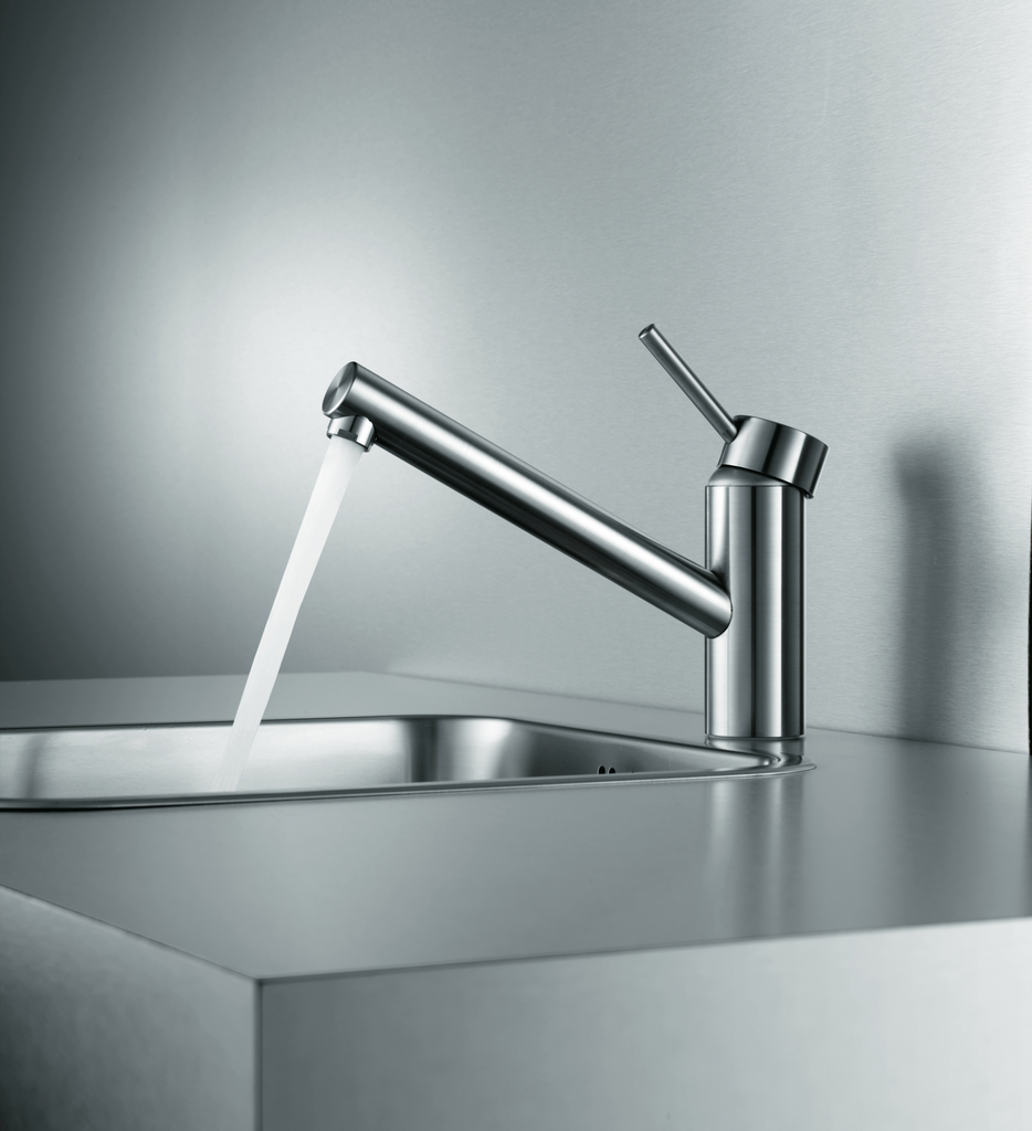 Einhebelmischer. Mit schwenkbarem Auslauf und Keramikkartusche.