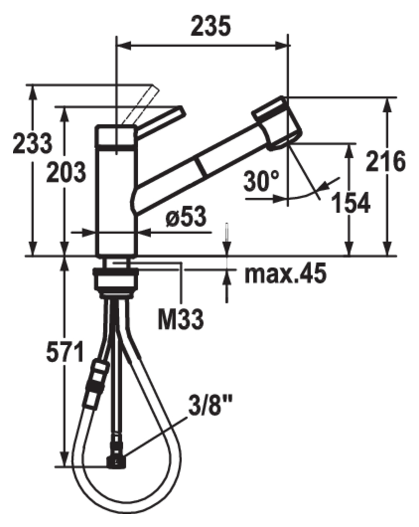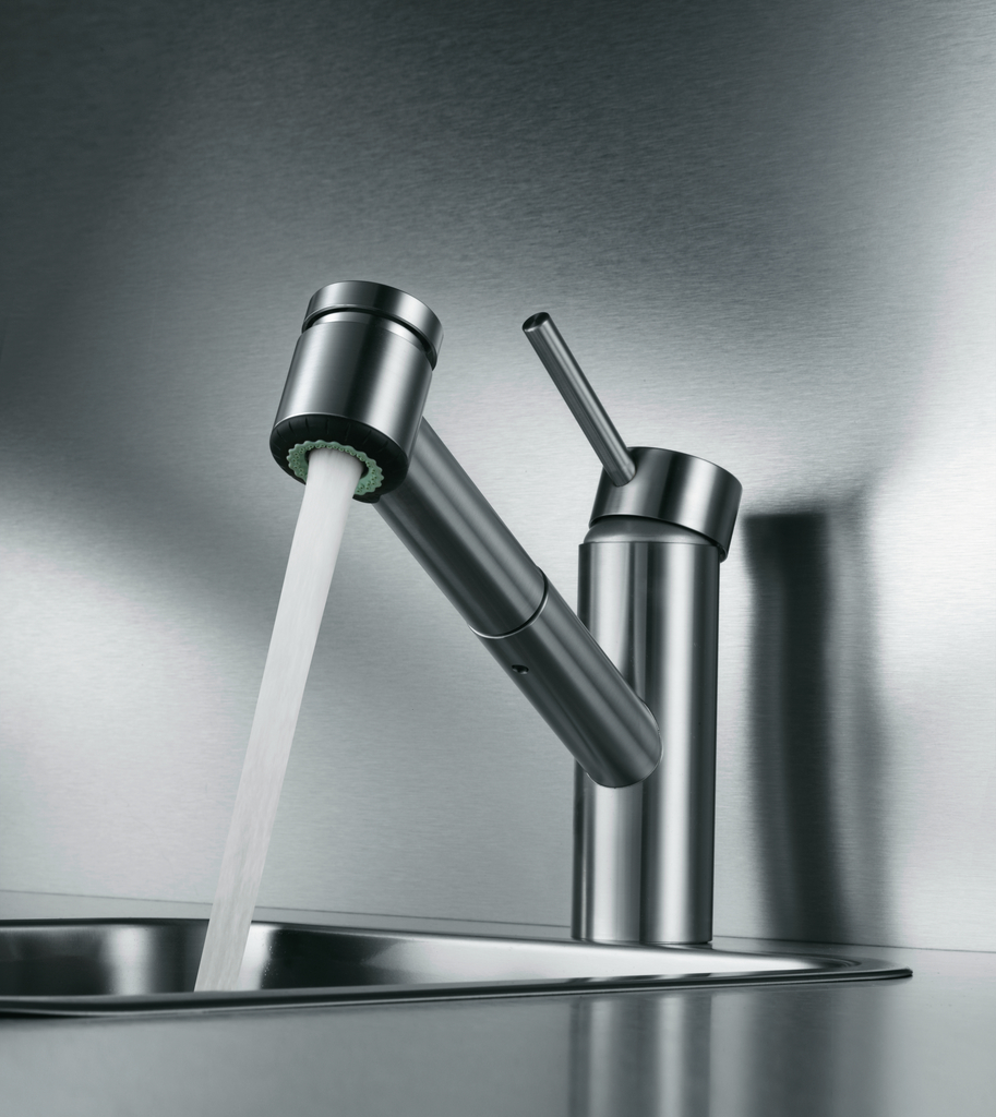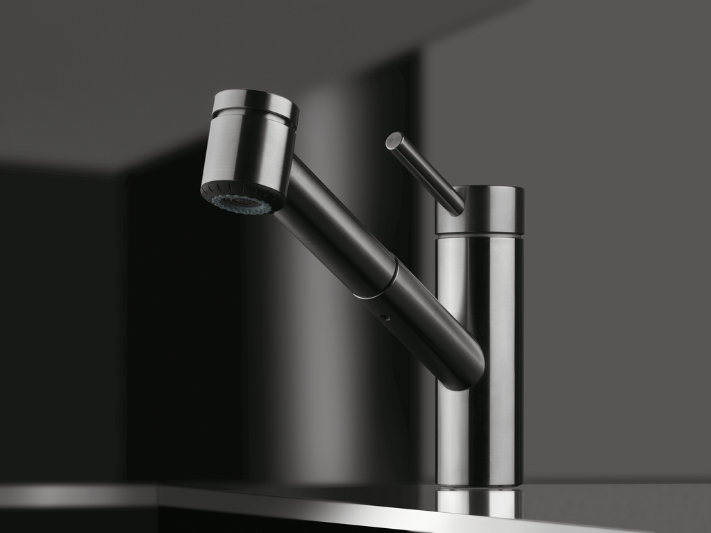 Einhebelmischer. Mit schwenk-/herausziehbarer Schlauchbrause (Strahl/Brause umstellbar) und Keramikkartusche.
