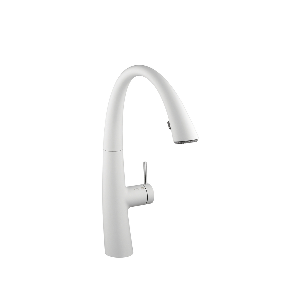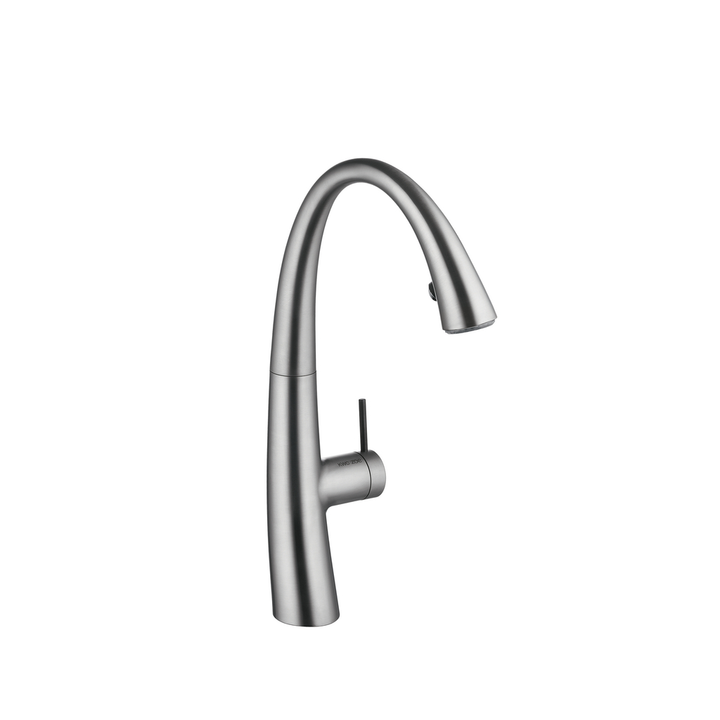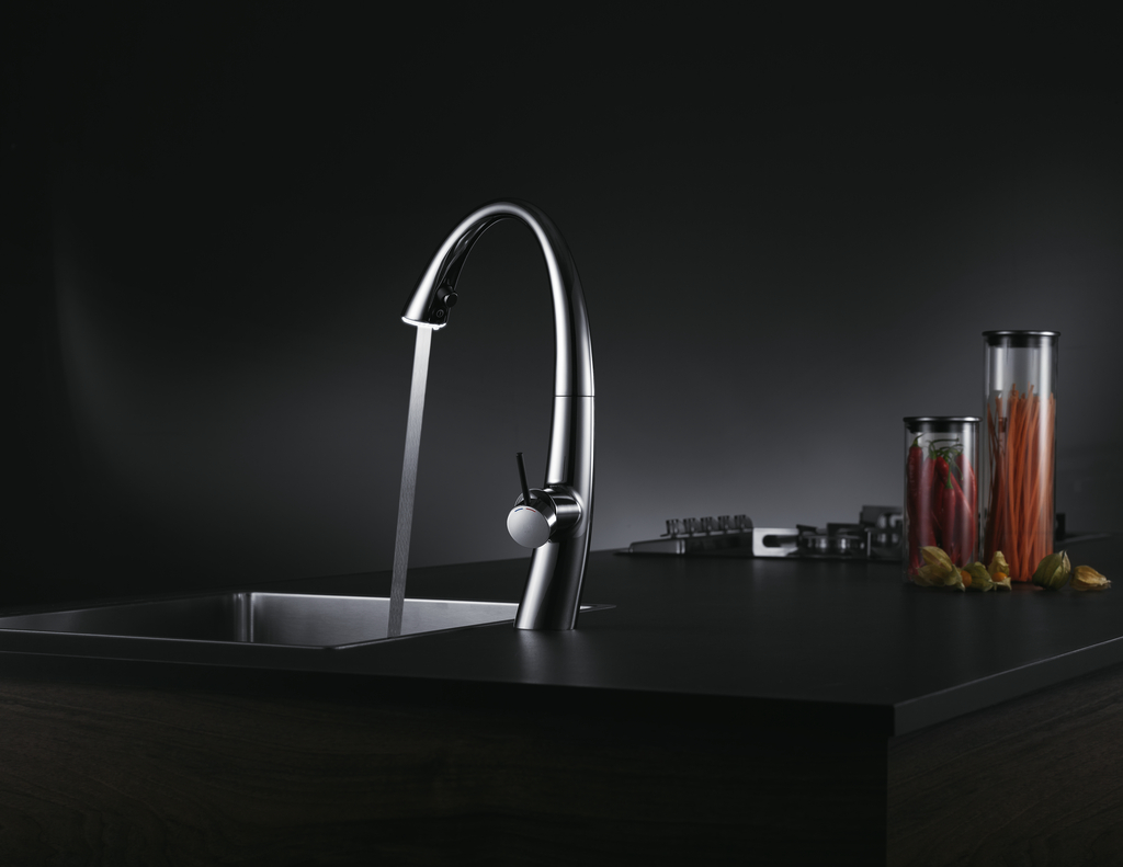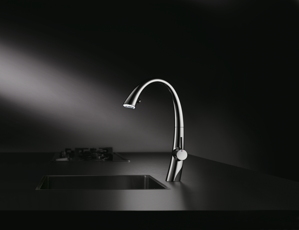 Premium-Lifestyle Armatur mit scheinbar unsichtbar in den Auszugauslauf integriertem LED-Lichtring