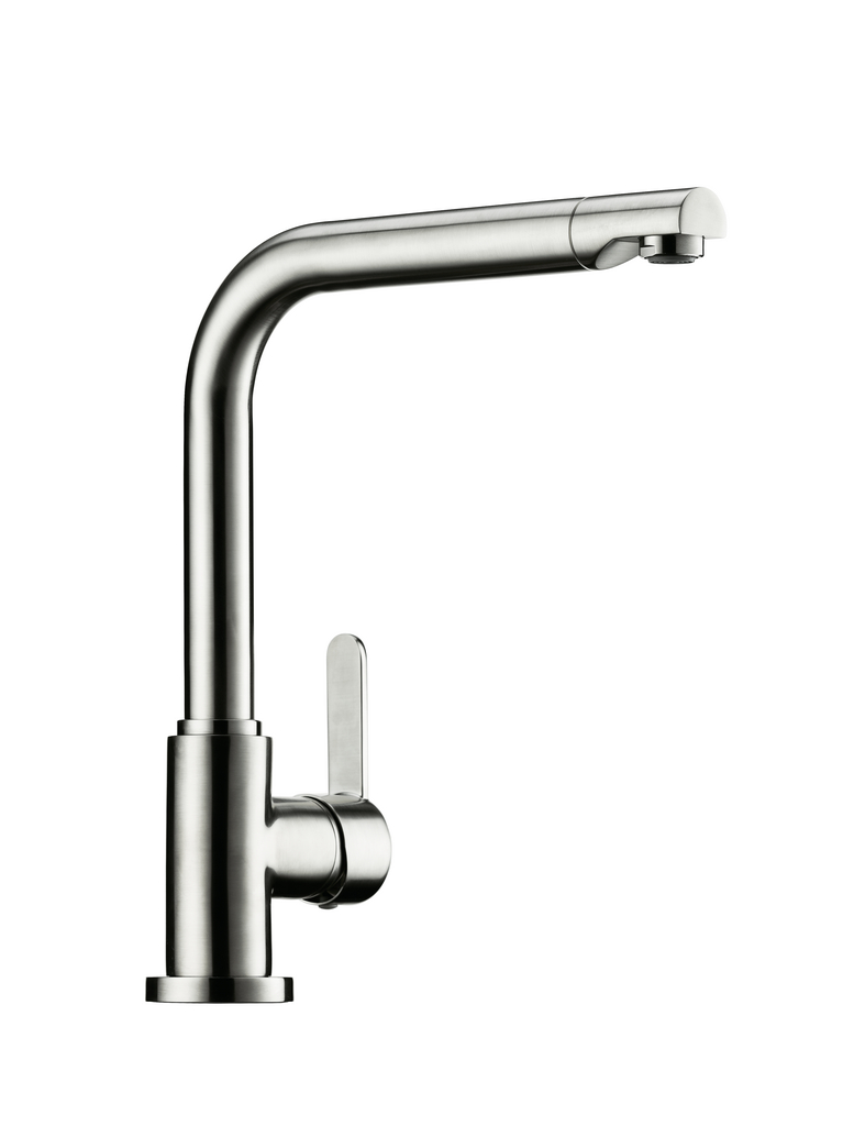 Einhebelmischer. Mit schwenkbarem Auslauf, seitlichem Hebel und Keramikkartusche. Ausführungen in: chrom Hochdruck / chrom Niederdruck / schwarz matt Hochdruck / edelstahlfinish Hochdruck Schwenkbereich 360° Bohr-Ø 35 mm