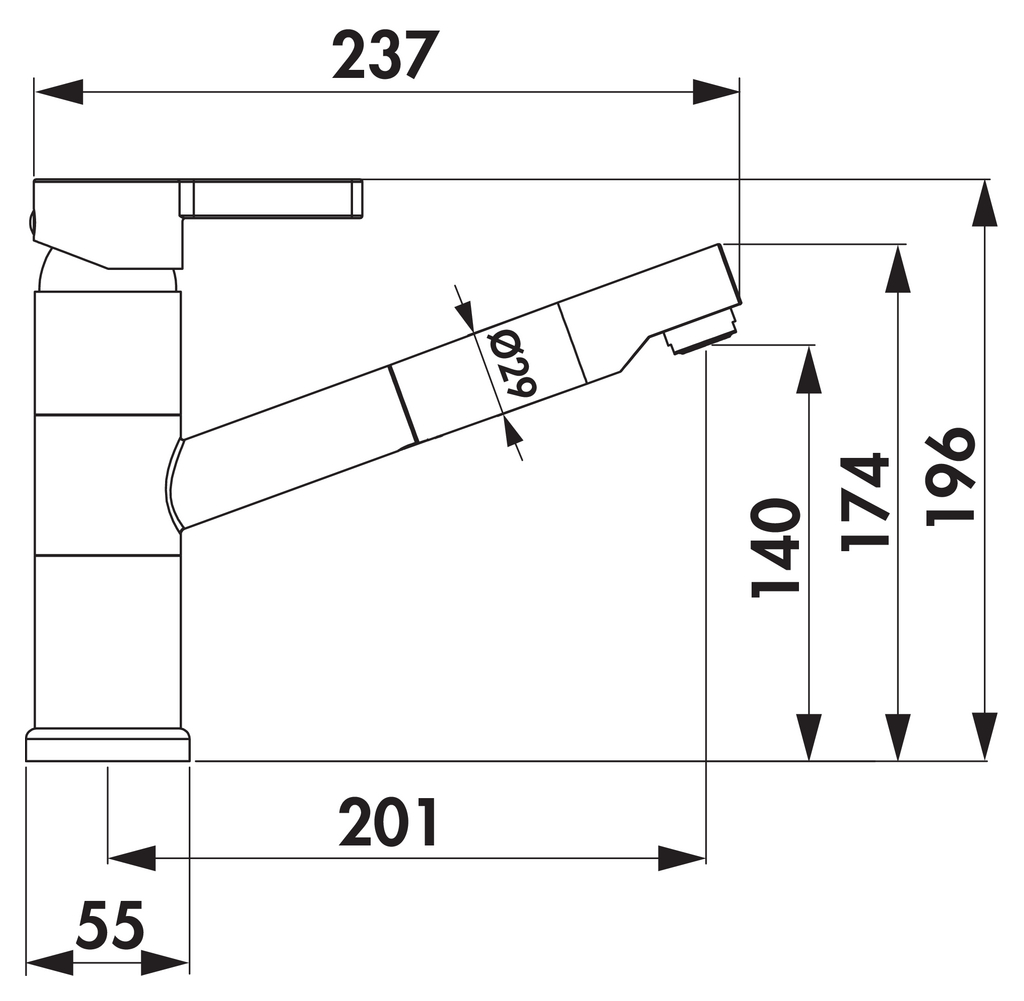 chromHochdruck oder NiederdruckDurchflussmenge 11.3 l/min bei 3 bar Druck Schlanke Armatur in ästhetischen Design Mit herausziehbarem Auslauf Besonders für kompakte Spülen geeignet Erweiterter Aktionsradius durch 120° schwenkbaren Aktionsradius BLANCO KANO-S: Auslauf schwenkbar 120° Brauseschlauch nylonummantelt Hahnlochbohrung mit Ø 35 mm erforderlich Kartusche mit keramischen Dichtungen Flexible Anschlussschläuche mit 350 mm Länge und ?'' Mutter für besonders leichte und sichere Montage Patentierter Strahlregler für deutlich geringere Verkalkung Stabilisierungsplatte zur Erhöhung der Standfestigkeit der Küchenarmatur bei Einbau in Spülen aus Edelstahl Serienmäßig mit Rückflussverhinderer ausgestattet und damit eigensicher gegen Rückfließen nach EN 1717 Flexible Anschlussschläuche mit 500 mm Länge und ?'' Mutter für besonders leichte und sichere Montage