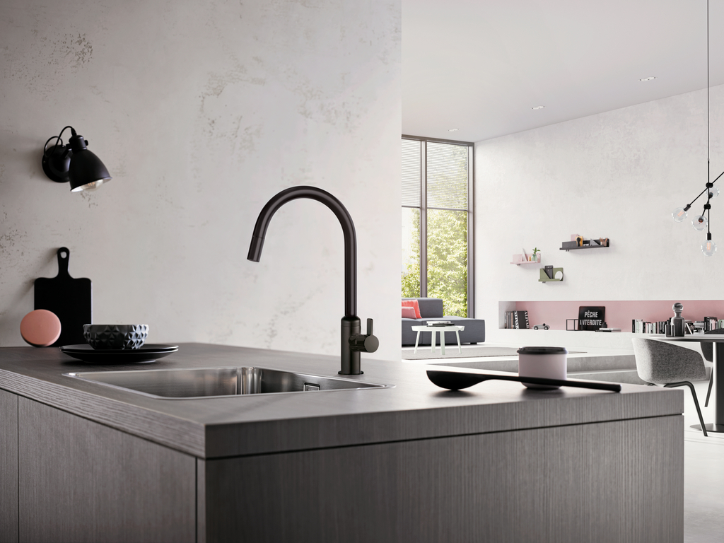 Attraktives Design mit einem ansprechenden hohen und schwenkbaren Auslauf.