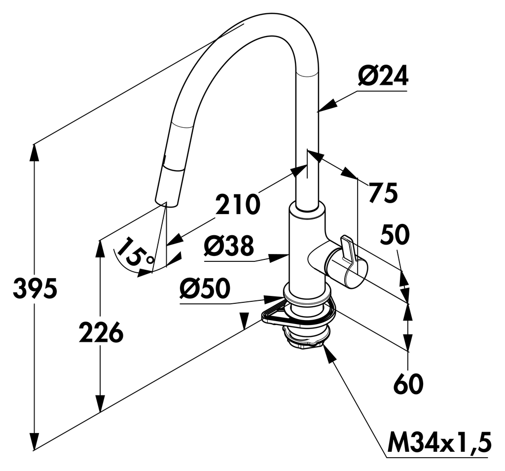 Einhebelmischer. Mit schwenk-/herausziehbarem Auslauf, seitlichem Hebel und Keramikkartusche.
