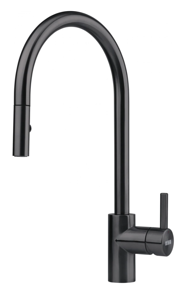 • Massiv-Edelstahl Armatur radial gebürstet mit Auszugsbrause