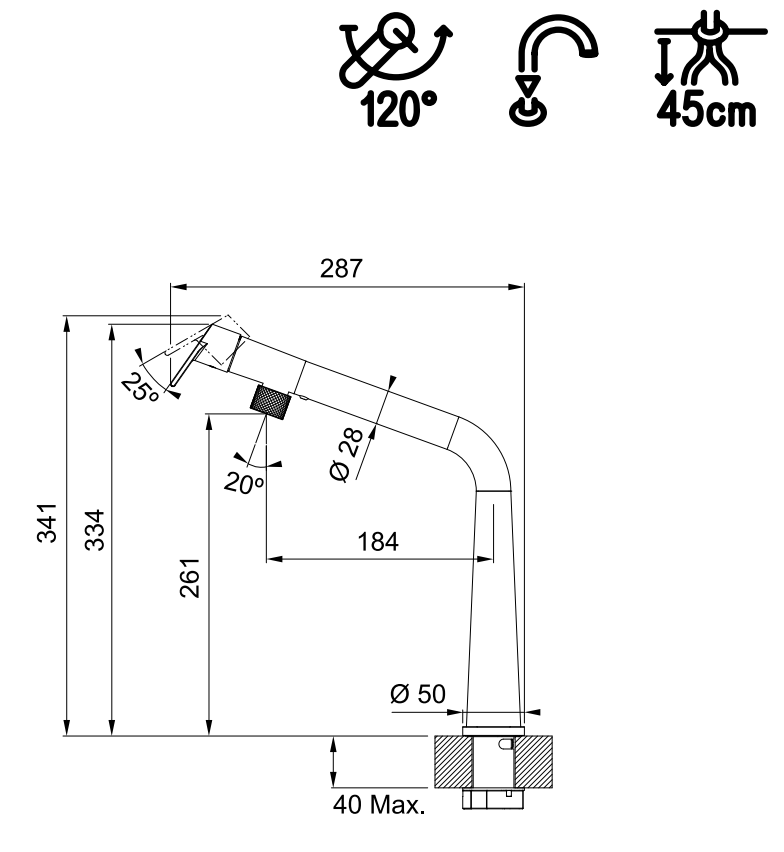 - Armatur ICON Schwenkauslauf, Hochdruck, Obenbedienung