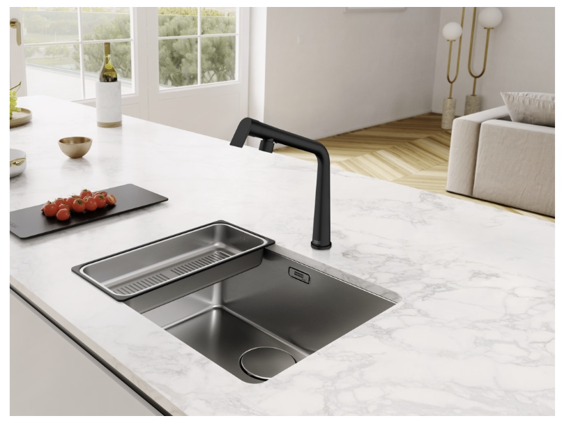 - Platzsparende Festauslaufvariante durch mittige Hebelstellung direkt über dem Auslauf