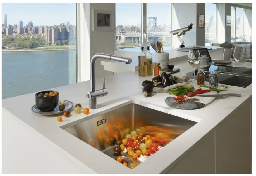 - Massiv-Edelstahl Armatur radial gebürstet mit hohem Auslauf