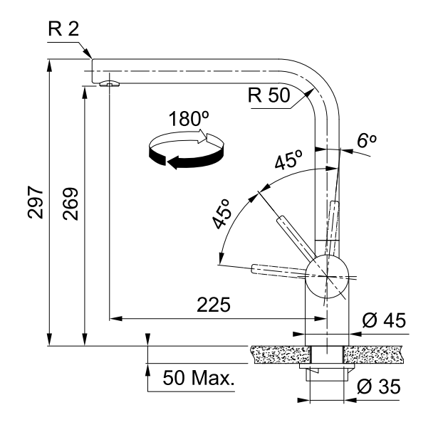 - Schwenkbereich: 180°