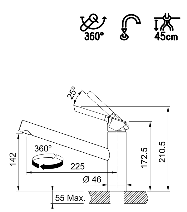 - Armatur Orbit Festauslauf, Obenbedienung, Hochdruck, Black Matt
