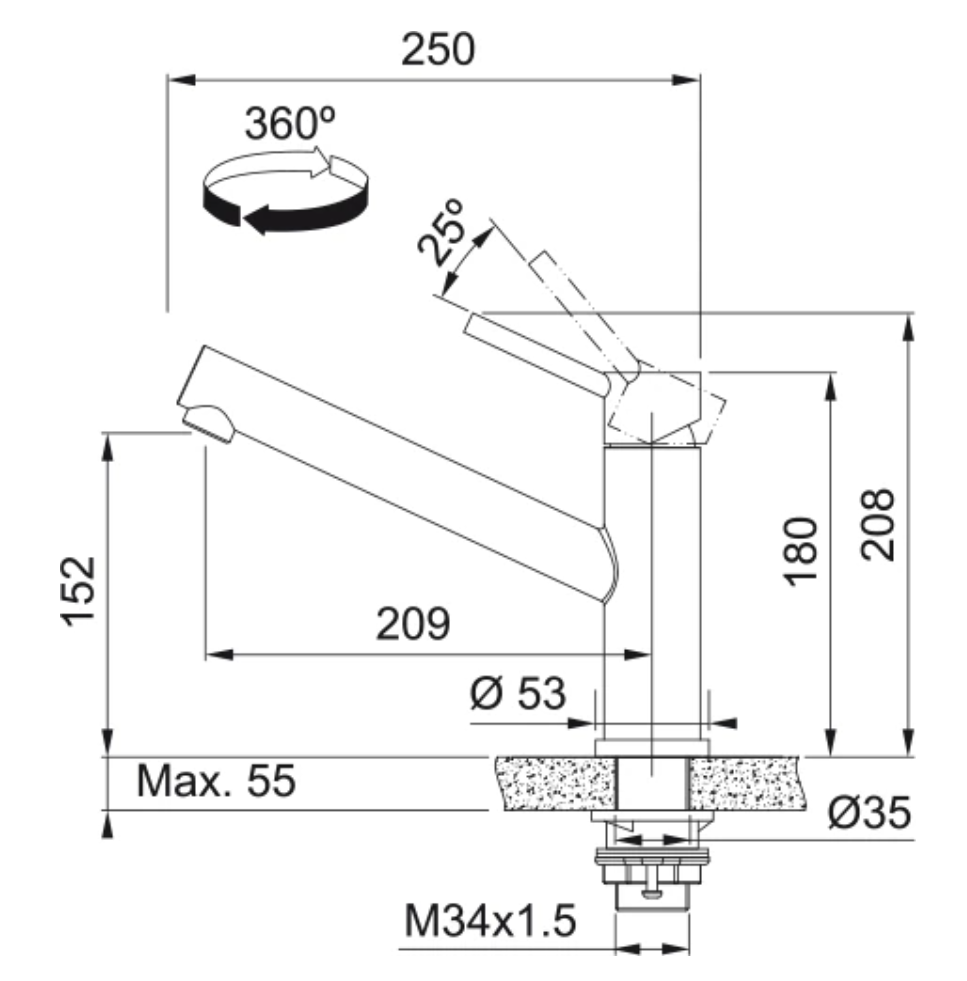 Einhebelmischer mit Festauslauf