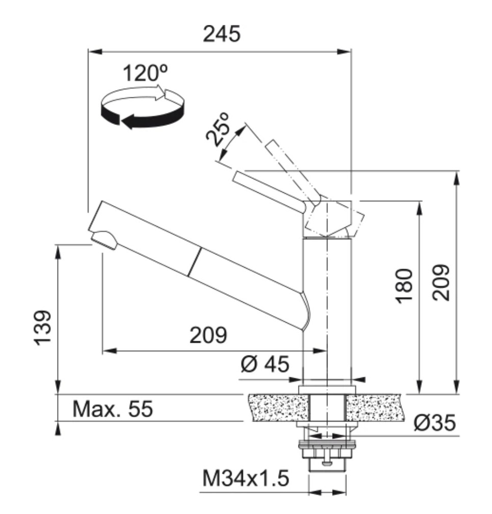 Einhebelmischer mit Zugauslauf