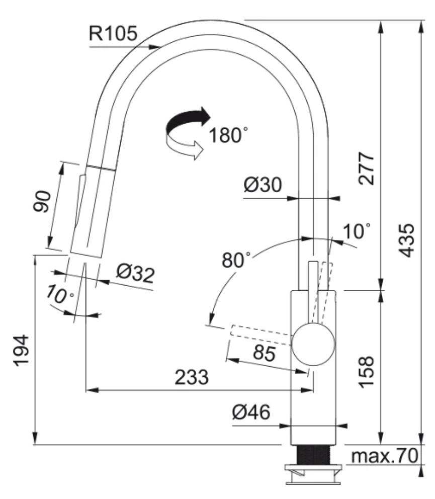 - Komfortable Umschaltfunktion am Brausekopf von Normalstrahl auf Brausestrahl
