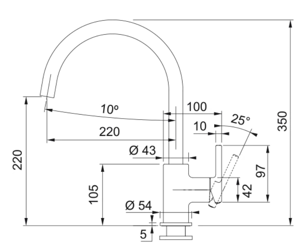 - Franke Armatur Lina XL Schwenkauslauf, Seitenbedienung