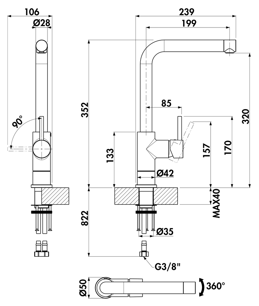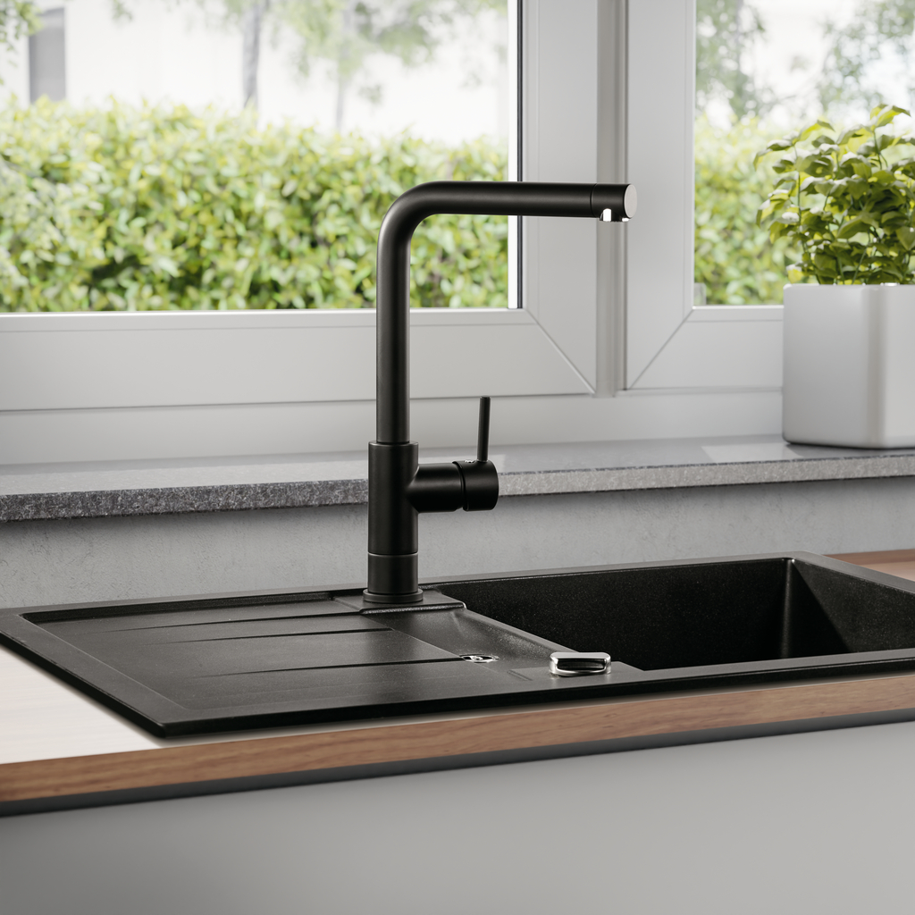 Einhebelmischer. Mit schwenkbarem Auslauf und Keramikkartusche.
