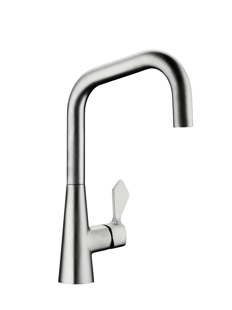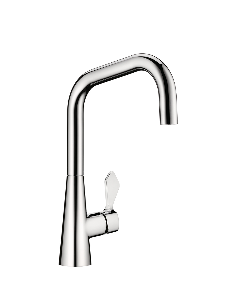 Einhebelmischer. Mit schwenkbarem Auslauf, seitlichem Hebel und Keramikkartusche.
