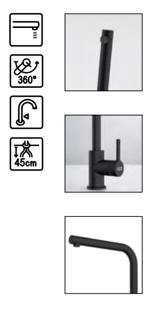 0-90° Griff für mehr Planungsflexibilität Einfache Montage dank einer Gewindehülse Einteiliger Griff garantiert ein elegantes Design und robuste Qualität