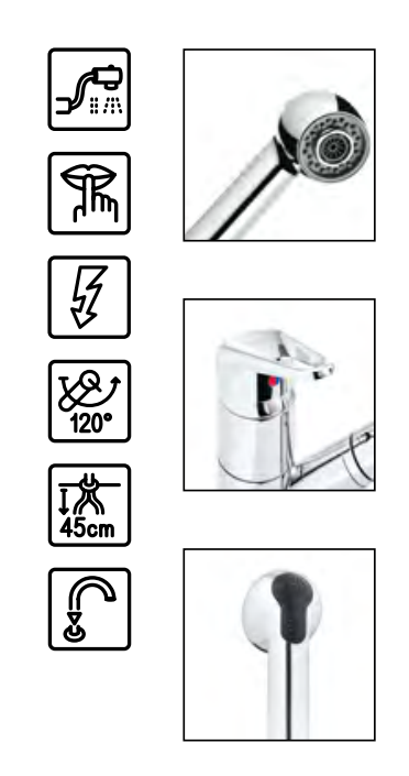 Harmonisches Design Großer Nutzungsradius durch Auszugsbrause Auch in trendigem Black Matt verfügbar