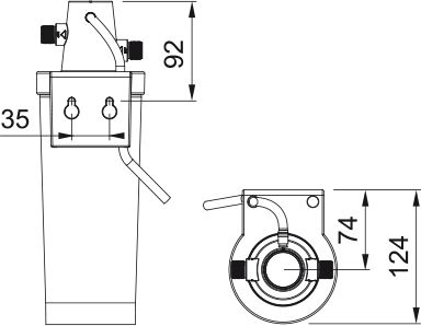 Bedienung für ungefiltertes Wasser rechts