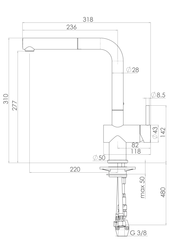 - Einhebelmischer mit herausziebarem Auslauf