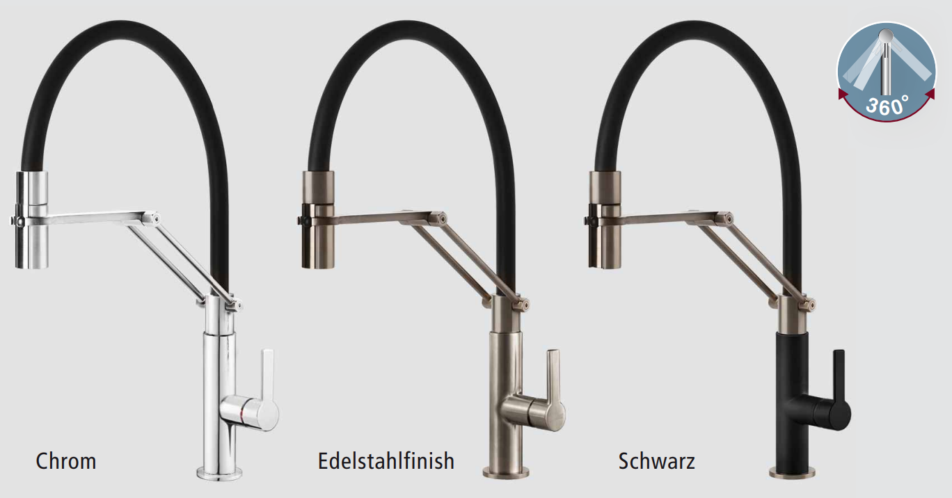 - erhältlich in chrom, edelstahlfinish, schwarz
