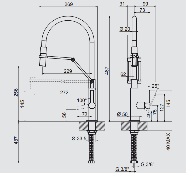 - Einhebelmischer mit umstellbarer Pendelbrause