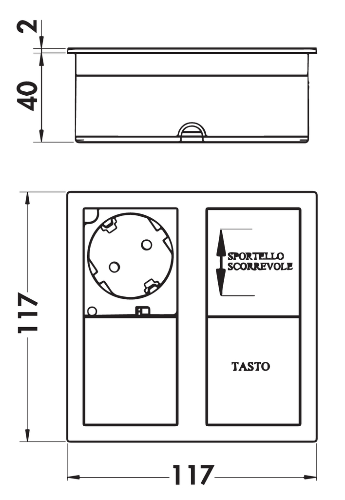 - Einbausteckdose mit Doppel-Schiebedeckel.
