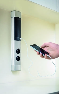 - Steckdosenlautsprecher- Kombination mit Bluetooth® Schnittstelle und USB Charger (Ladestation) zur Wandmontage.