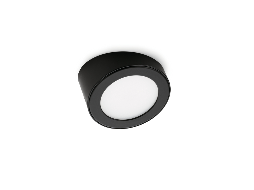 Aufbauleuchte. Aluminiumgehäuse, edelstahlfarbig oder schwarz, Ausleuchtung ohne sichtbare LED-Punkte.