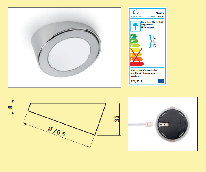Diese Leuchte enthält eingebaute LED-Lampen mit den Energieklassen A++ - A auf einer Skala von A++ - E