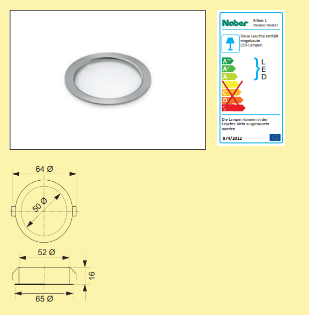 Diese Leuchte enthält eingebaute LED-Lampen mit den Energieklassen A++ - A auf einer Skala von A++ - E